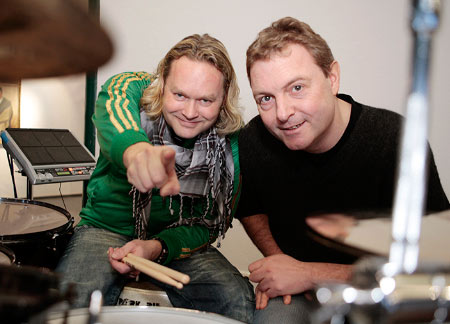 Andy Gillmann und Jörg nach dem Workshop bei Drummers World